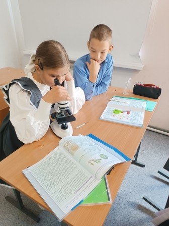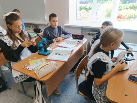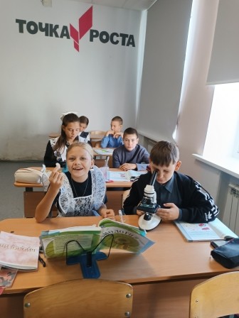 В лаборатории "Биология" регулярно проходят занятия с оборудованием поступившим по программе "Точка роста". На уроках в пятых классах ребята просто обожают работать с микроскопами. Мы уже научились самостоятельно готовить микропрепараты.