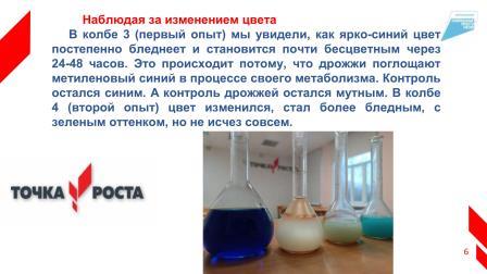 В кабинете биологии центра Точка роста поработали обучающиеся 6 класса. Была проведена лабораторная работа по изучению химического состава растений. Она включает в себя опыты по выявлению основных органических веществ (углеводов, белков, жиров) и минеральных веществ. Для этого используют различные реакции, например, йодную пробу на крахмал, промывание муки для выделения клейковины (белка) и тест на наличие жиров с помощью промокательной бумаги. Также можно наблюдать сгорание растения для понимания роли органических веществ.